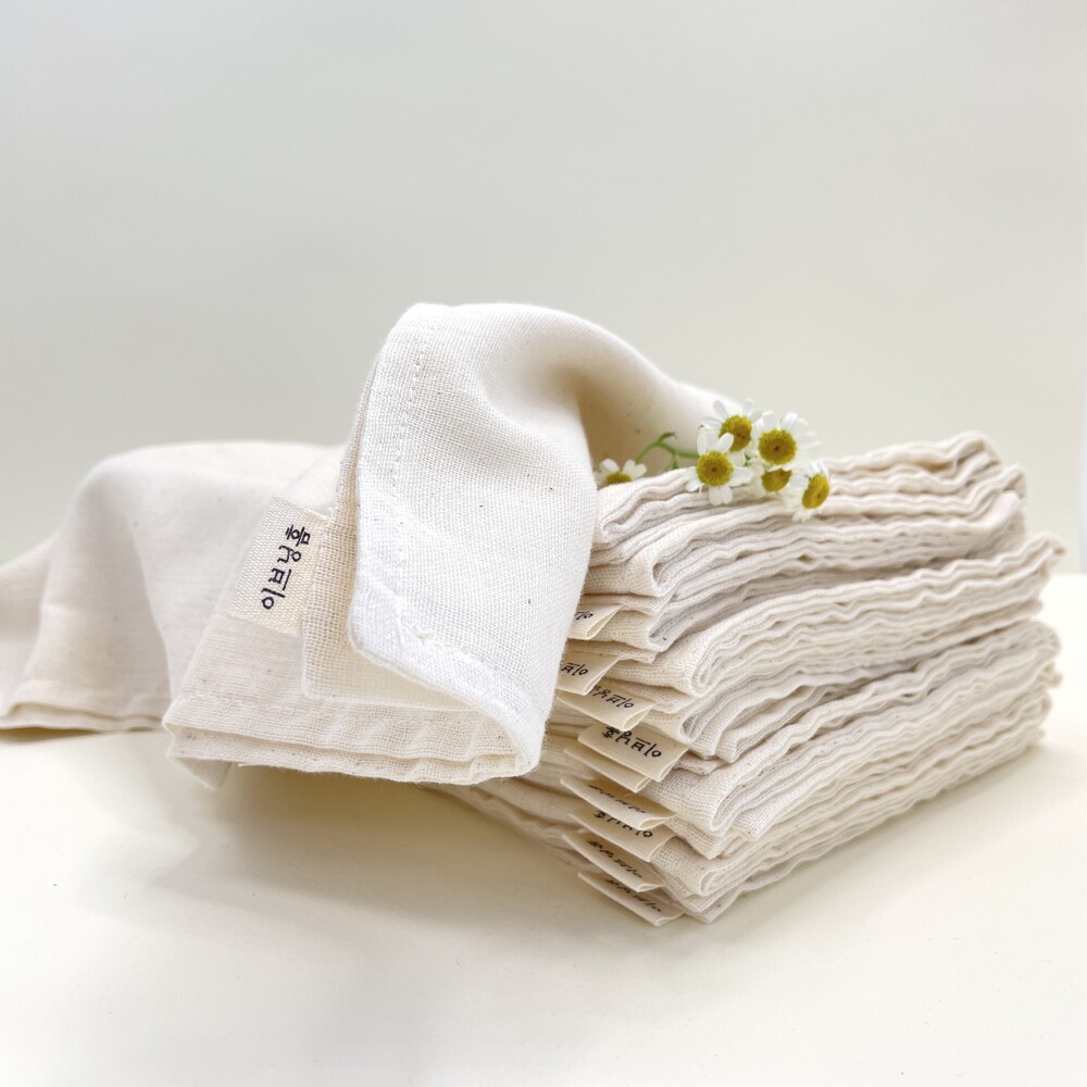 흡수력이 좋고 건조가 빠른 소창행주는 행주, 손 타월, 감성소품 등으로 활용하기 좋아요. 무염, 무형광, 무표백의 상품으로 아이들도 안전하게 사용할 수 있답니다. 이브닝홈 소창행주는 국내제작 순수 면 100% 상품이에요.