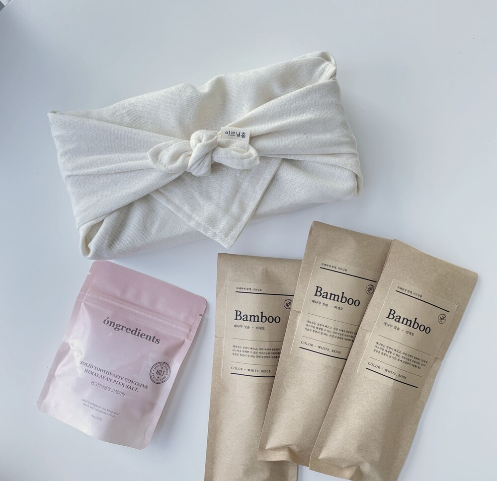 "부드러운 소창행주와 친환경 상품의 대표주자 대나무칫솔이 포함된 구성이에요🥰 대나무칫솔은 가볍게 선물하기에도 부담이 적어요! 나만의 각인 서비스도 이용해 보세요! "