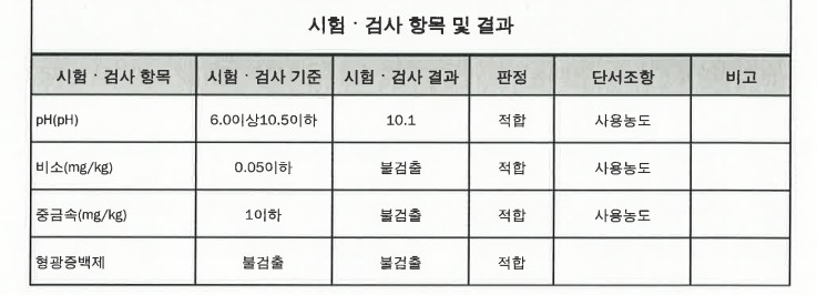 ·유해물질 불검출 시험성적서