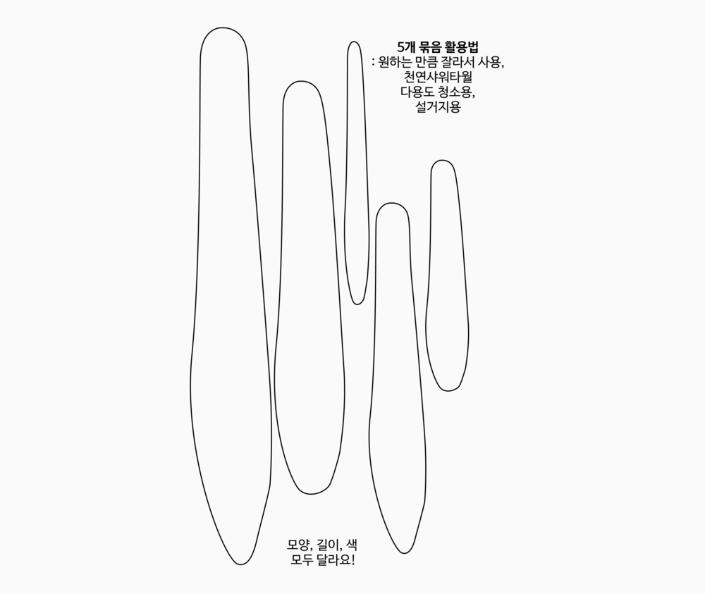 50cm 미만의 다양한 크기의 상품을 밸런스 있게 모아 보내드려요. 다양한 용도로 사용하고 싶으신 분들께 추천드려요. 천연설거지바도 2개 있는 구성이라 합리적이예요.