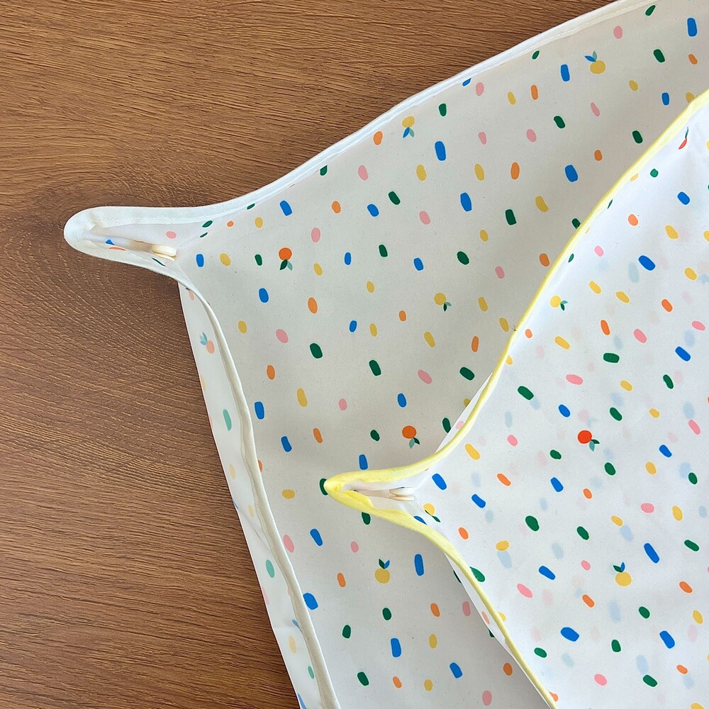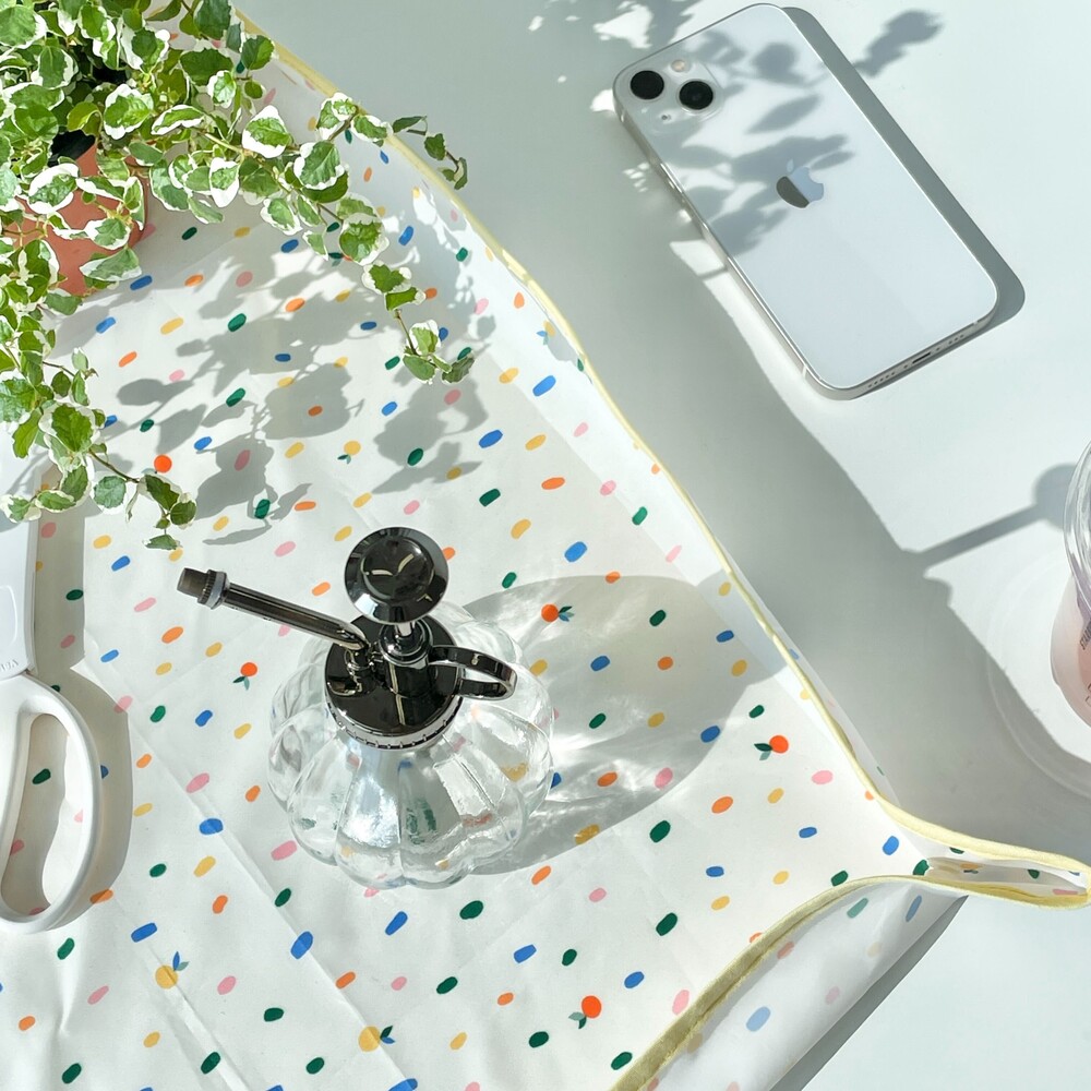 칙칙한 분갈이 매트가 지겨웠던 포레스텝이 분갈이 매트를 직접 제작했어요. 분갈이 매트 외에 다양한 용도로 활용도 가능하고 휴대하기도 좋은 사이즈예요. 생활방수 천으로 제작되어 물이나 오염이 묻었다면 깨끗한 천으로 닦아주면 된답니다. 작은 식물을 분갈이해 주기 좋은 사이즈예요. 분갈이 키트와 함께하면 좋아요!