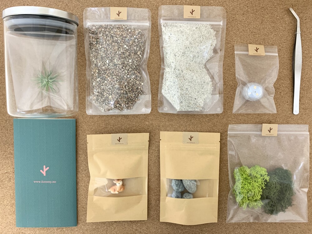 포레스텝 테라리움 상자에는 테라리움을 만드는데 필요한 재료들이 알차게 담겨있어요. 누구나 쉽게 테라리움을 완성할 수 있도록, 정성스럽게 제작한 설명서가 함께 들어있어요. 설명서를 참고하여 나만의 개성있는 테라리움을 완성해보세요!