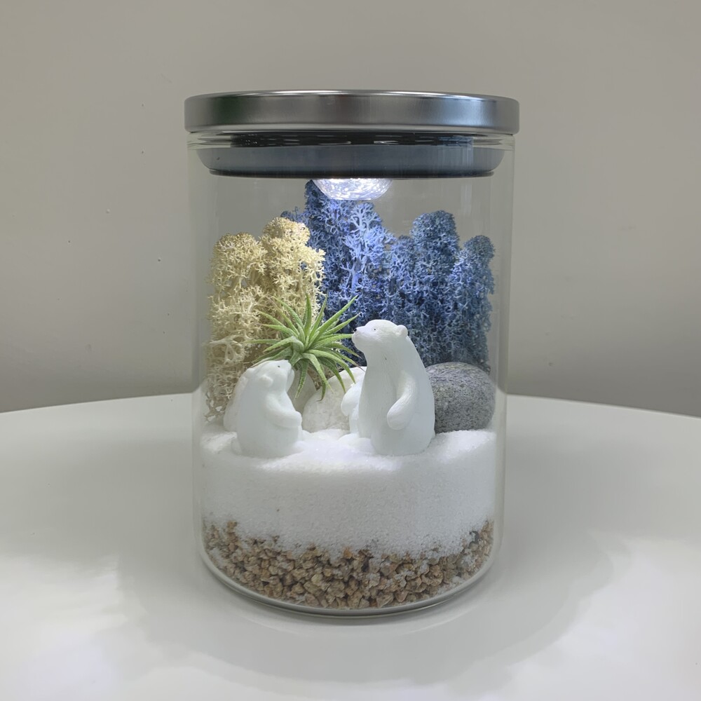포레스텝 테라리움 시리즈는 누구나 쉽고 재미있게 테라리움을 만들어 볼 수 있도록 구성한 포레스텝의 자체제작 상품이에요. 포레스텝 테라리움의 특별함 중 하나인 은은하게 빛나는 조명은 어두운 밤을 분위기있게 만들어 준답니다.