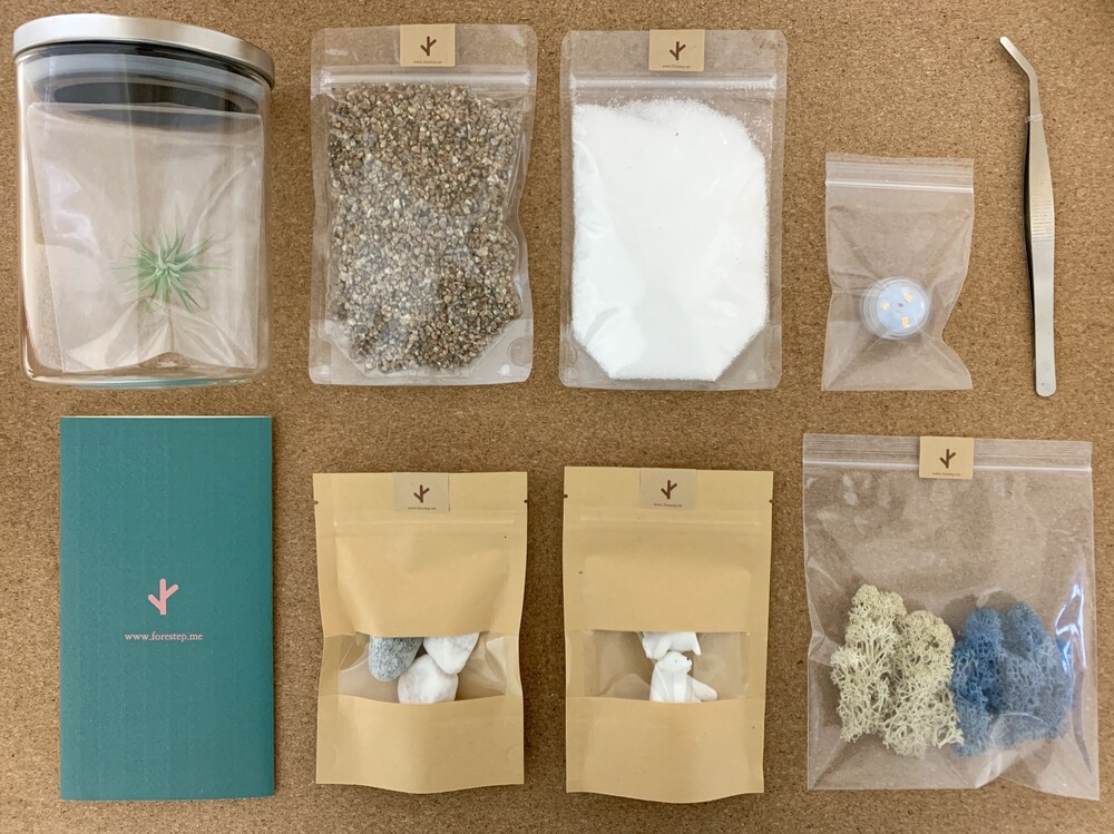 포레스텝 테라리움 상자에는 테라리움을 만드는데 필요한 재료들이 알차게 담겨있어요. 누구나 쉽게 테라리움을 완성할 수 있도록, 정성스럽게 제작한 친절한 설명서가 함께 들어있어요. 설명서를 참고하여 나만의 개성있는 테라리움을 완성해보세요!