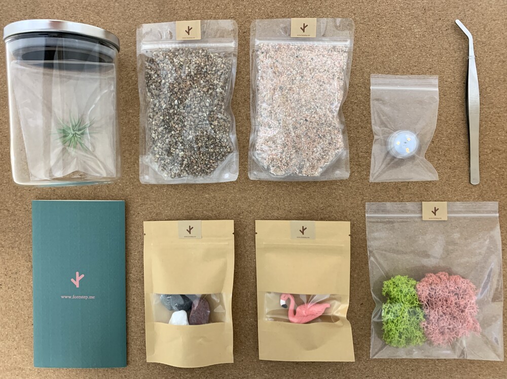 포레스텝 테라리움 상자에는 테라리움을 만드는데 필요한 재료들이 알차게 담겨있어요. 누구나 쉽게 테라리움을 완성할 수 있도록, 정성스럽게 제작한 친절한 설명서가 함께 들어있어요. 설명서를 참고하여 나만의 개성있는 테라리움을 완성해보세요!