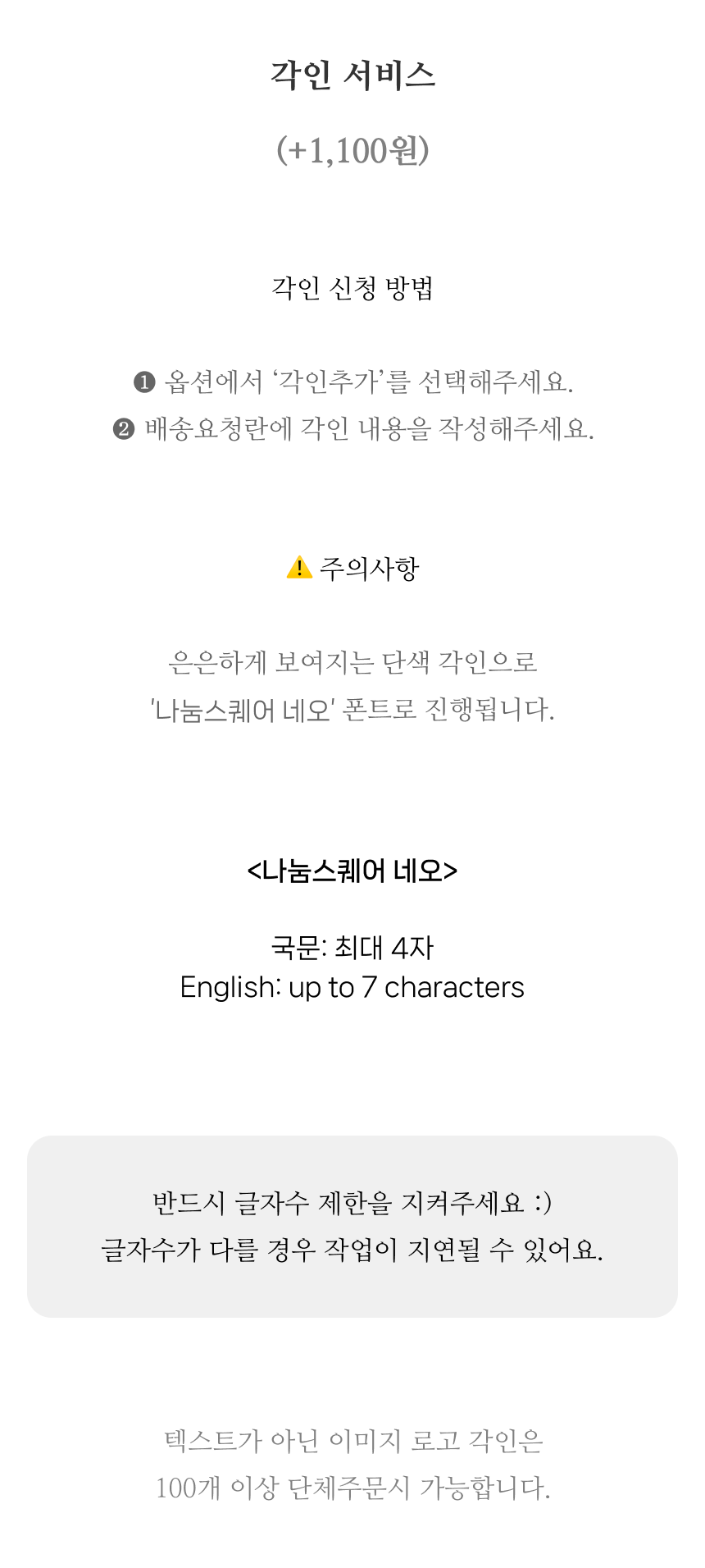 전용 미니 삽에 각인을 추가할 수 있어요! (+1,100원)