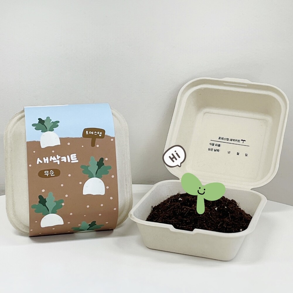 - 친환경 배양 트레이: 새싹키트 포장용기가 곧 무순을 키울 수 있는 친환경 트레이예요! 친환경 트레이는 무순이 잘 자랄 수 있는 환경을 조성해준답니다. 공간을 적게 차지하며, 집안 어디에서나 배치할 수 있어 좋아요 :)